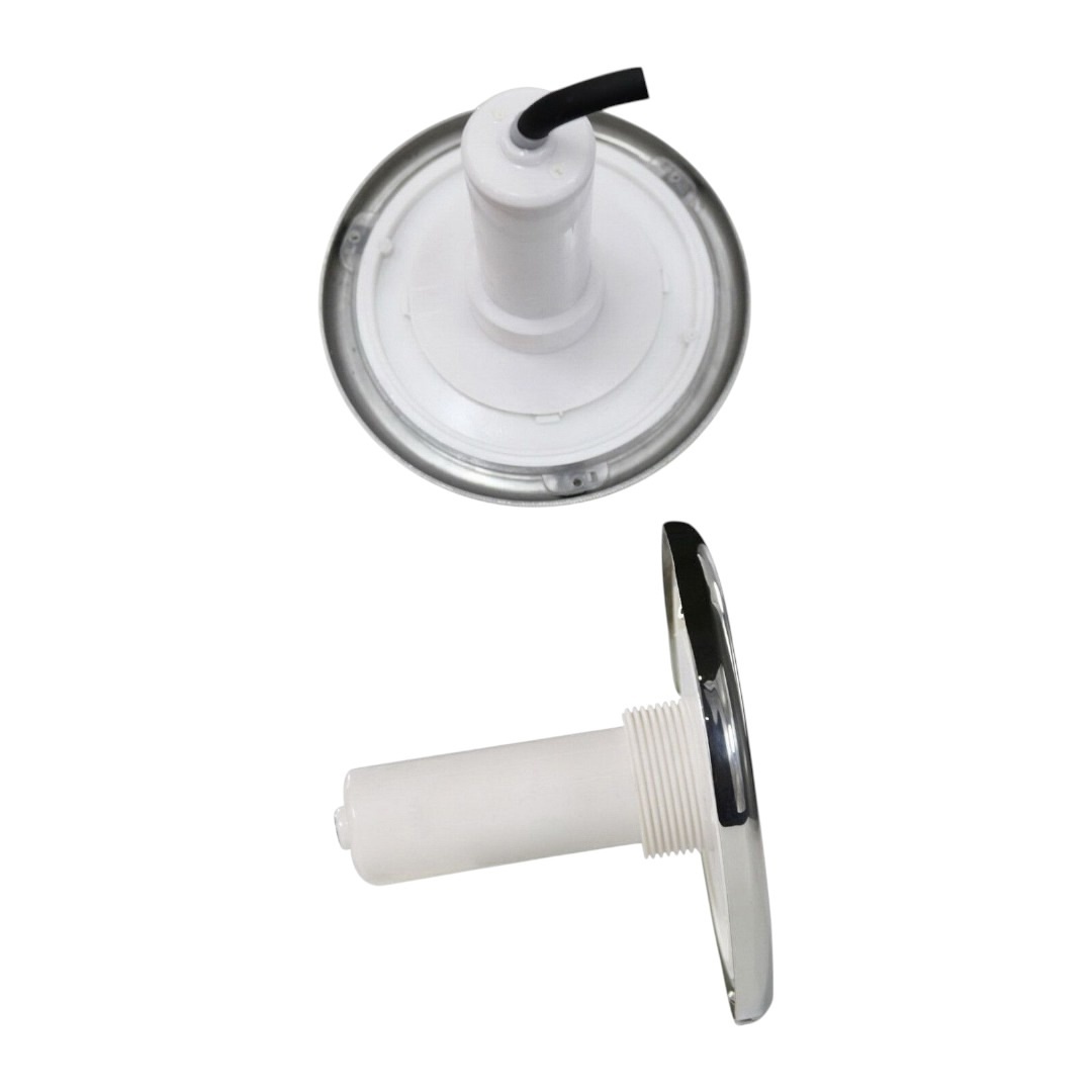 Корпус прожектора изготовлен из прочного пластика. Лицевая часть лампы выполнена из кислостойкой нержавеющей стали, стойкой к коррозии, ультрафиолету и химии. Специальная полимерная заливка лампы обеспечивает высокую герметичность. Лампа выступает на стене бассейна всего на 12 мм.