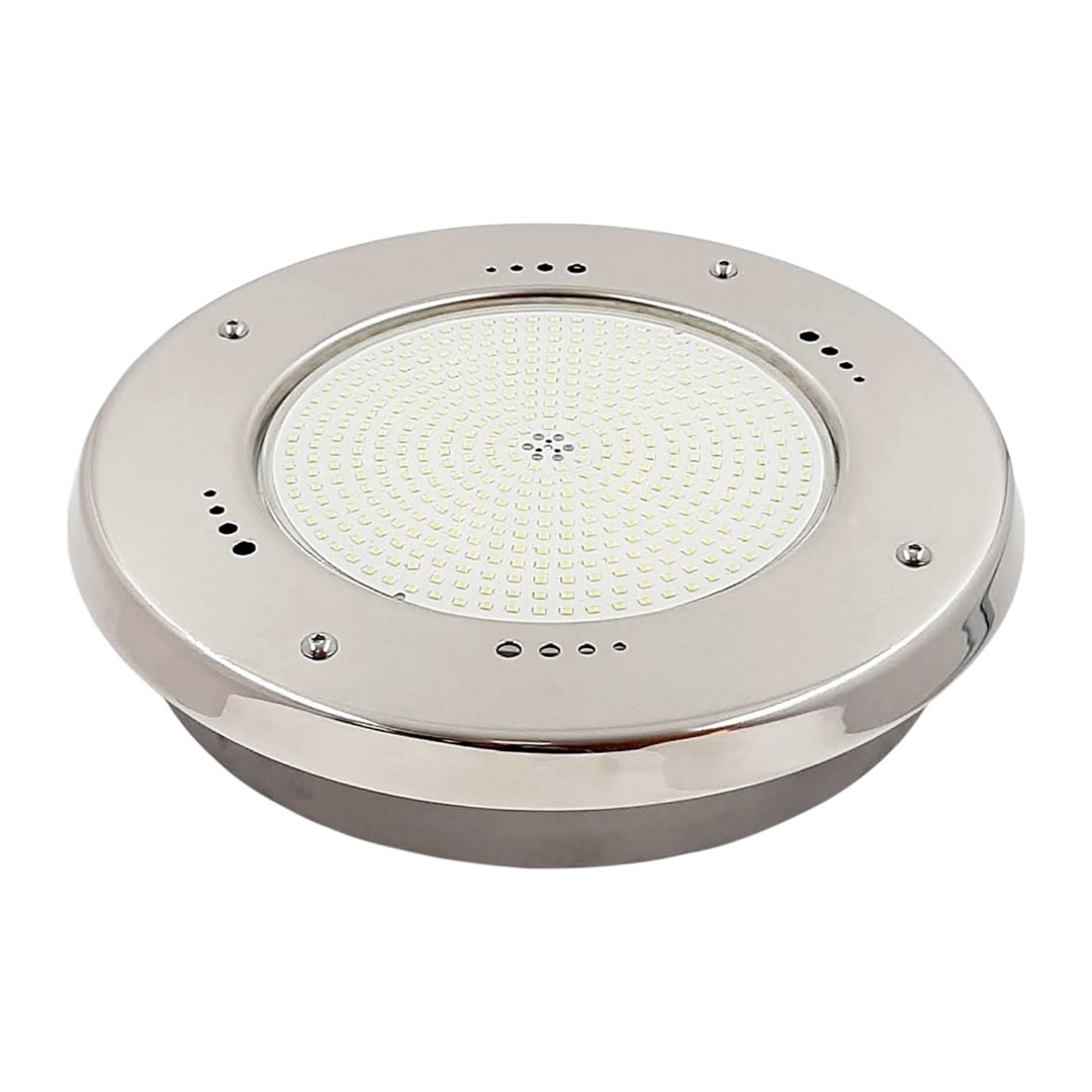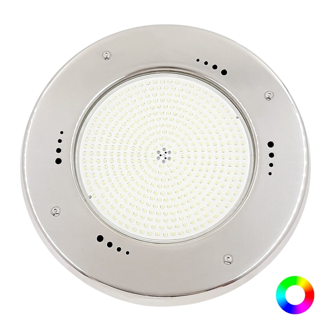 Корпус прожектора изготовлен из нержавеющей стали, устойчивой к коррозии, воздействию ультрафиолета и химии. Лицевая панель имеет зеркальную полировку. Поставляется в комплекте с закладной нишей.