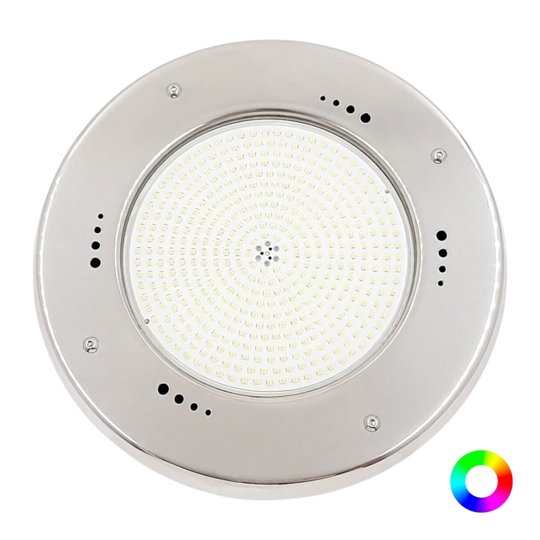 Корпус прожектора изготовлен из кислостойкой нержавеющей стали, устойчивой к коррозии, воздействию ультрафиолета и химии. Лицевая панель имеет зеркальную полировку. Поставляется в комплекте с закладной нишей.