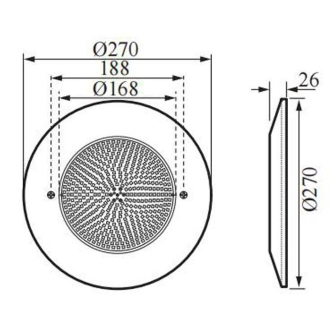Прожектор светодиодный Aquaviva HJ-WM-SS270FGV - используется для освещения бассейнов, фонтанов и SPA. Корпус и лицевая часть прожектора изготовлены из кислостойкой нержавеющей стали, устойчивой к коррозии, воздействию ультрафиолета и химии. Подходит для бассейнов с любой отделкой.