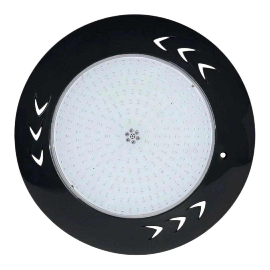Корпус прожектора изготовлен из смеси пластика и поликарбоната. Полости заполнены специальным полимером, гарантирующим высокую степень защиты. Оборудован встроенной термо- и электрозащитой. Специальная крепежная рамка позволяет установить фонарь прямо на поверхность чаши.
