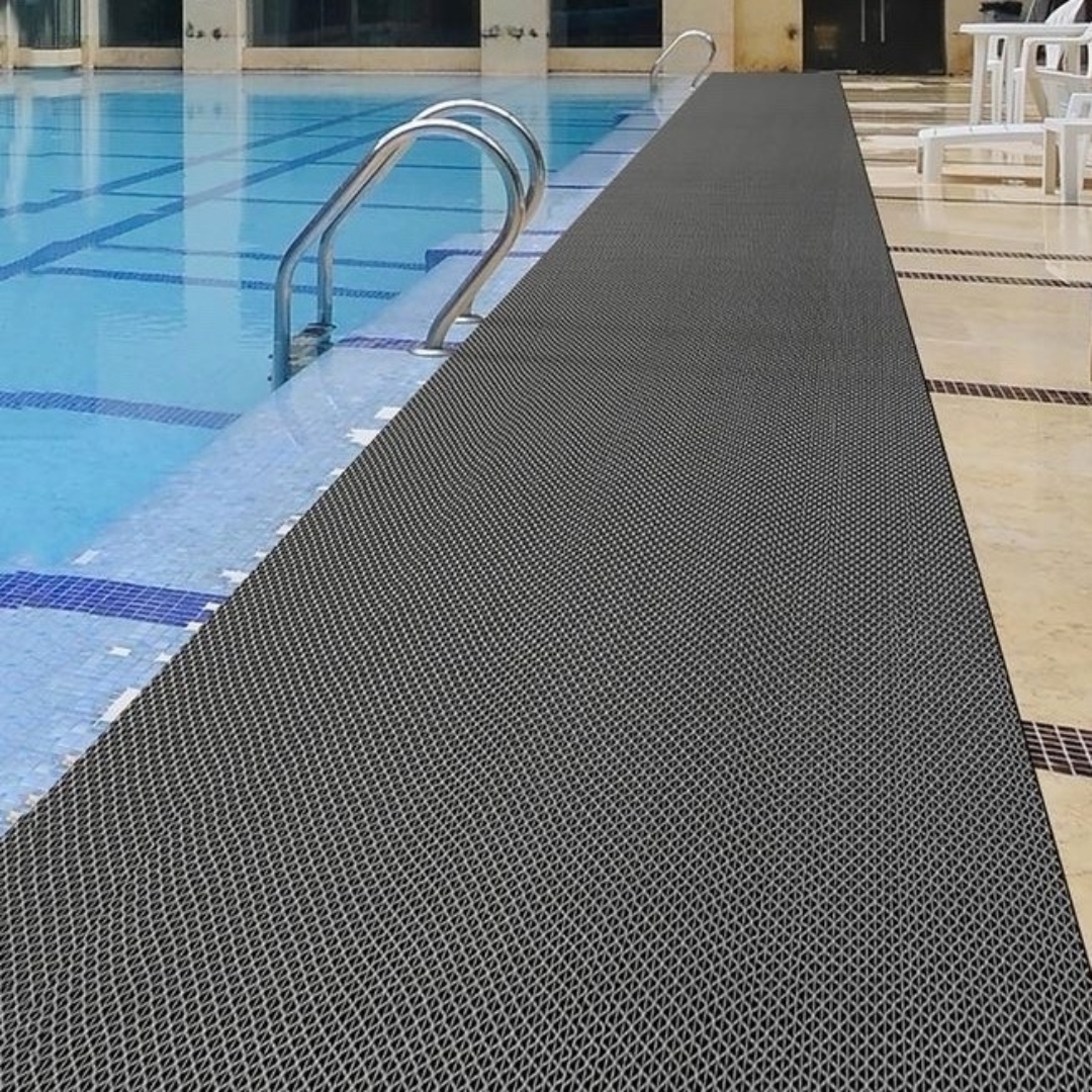 Покрытие изготовлено из прочного ПВХ, стойкого к ультрафиолету. Имеет текстурированную поверхность с ячеистой структурой. Легко чистится и легко укладывается в любом месте. Используется в качестве напольного покрытия для бассейнов, аквапарков, саун, душевых, раздевалок. Подходит для ванны, балкона, веранды, сада, обустройства ступеней, пандусов, детских площадок.