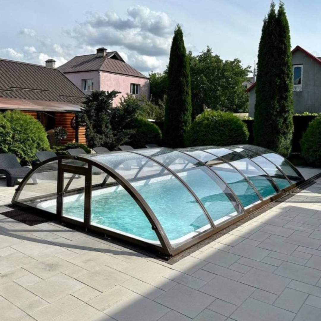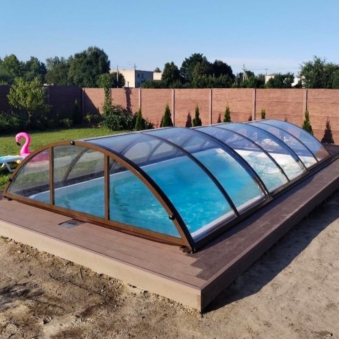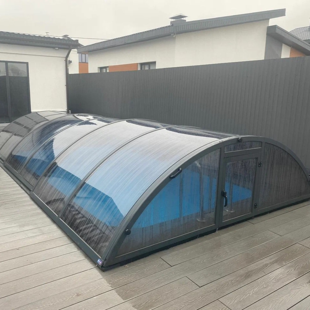 Раздвижной павильон Seccon STANDART L - позволяет продлить купальный сезон, защитить бассейн от загрязнений и непогоды, а также обеспечить безопасность. Каркас павильона изготовлен из алюминиевых профилей, которые хорошо держат форму и не деформируется. Раздвижная конструкция позволяет легко перемещать сегменты. Панели выполнены из прочного канального поликарбоната.