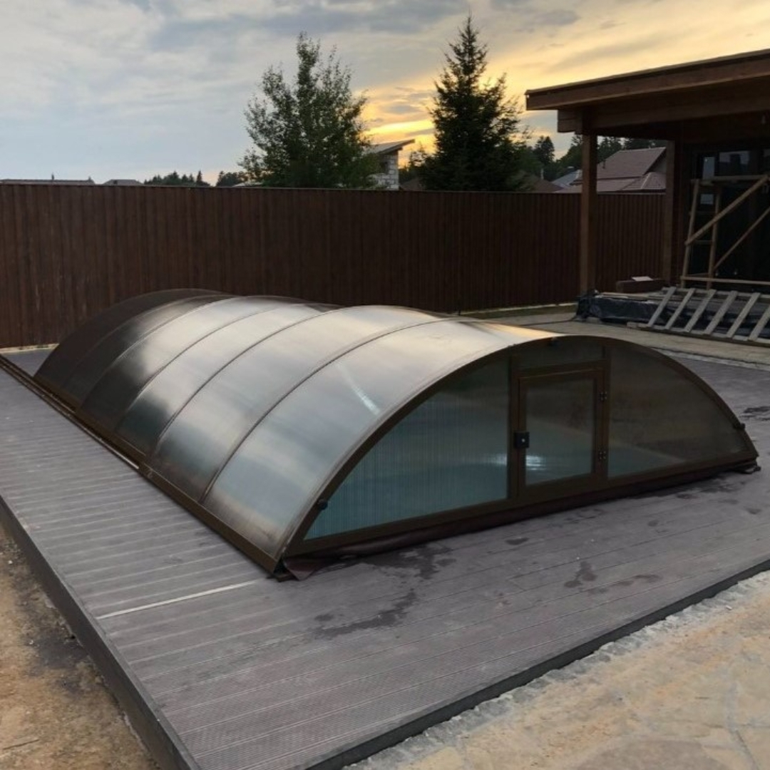 Раздвижной павильон Seccon STANDART L - позволяет продлить купальный сезон, защитить бассейн от загрязнений и непогоды, а также обеспечить безопасность. Каркас павильона изготовлен из алюминиевых профилей, которые хорошо держат форму и не деформируется. Раздвижная конструкция позволяет легко перемещать сегменты. Панели выполнены из прочного канального поликарбоната.