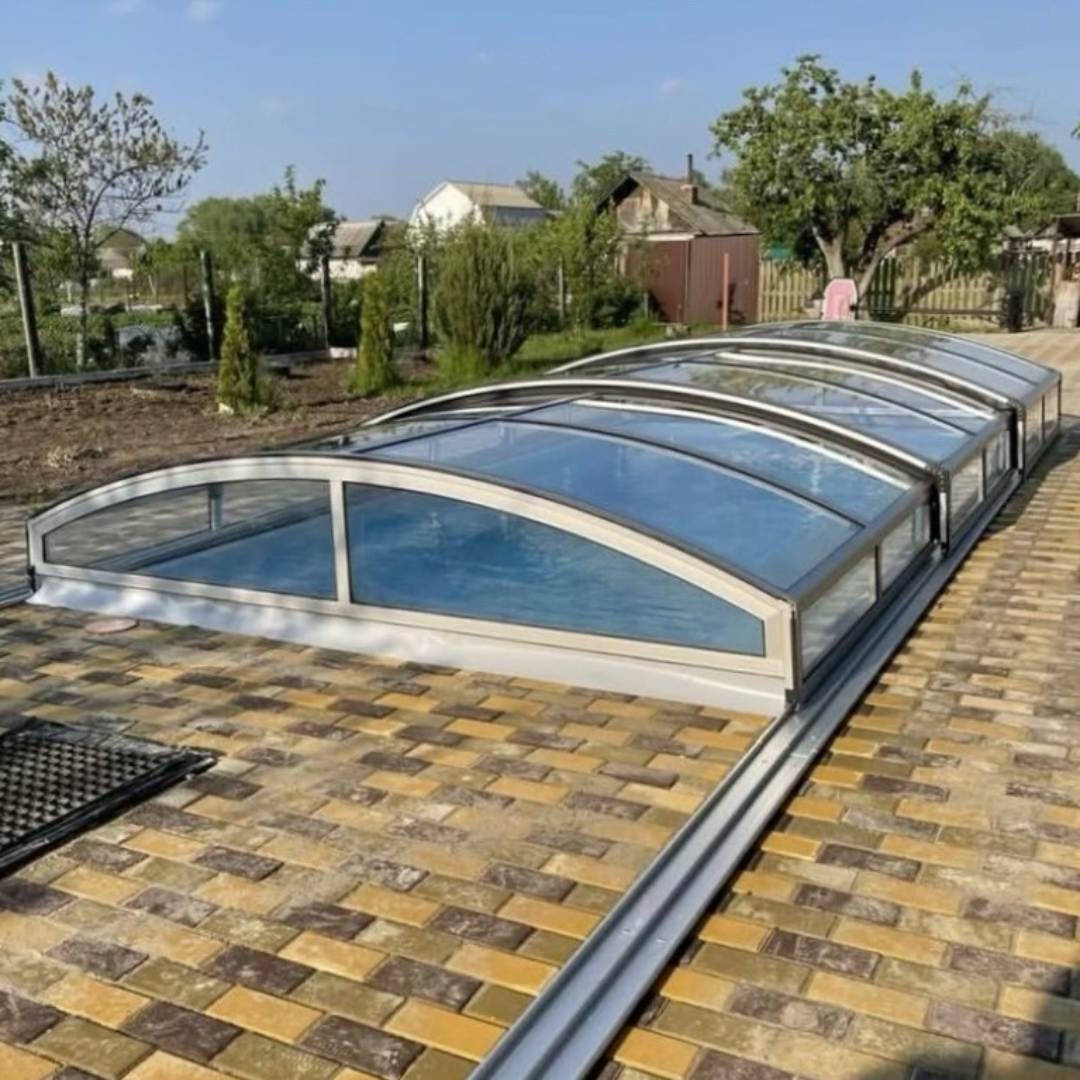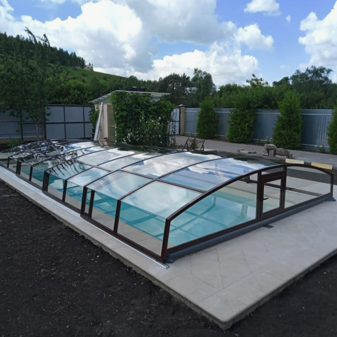 Раздвижной павильон Seccon AVRORA L - позволяет продлить купальный сезон, защитить бассейн от загрязнений и непогоды, а также обеспечить безопасность. Каркас павильона изготовлен из алюминиевых профилей, которые хорошо держат форму и не деформируется. Раздвижная конструкция позволяет легко перемещать сегменты. Панели выполнены из прочного канального поликарбоната.