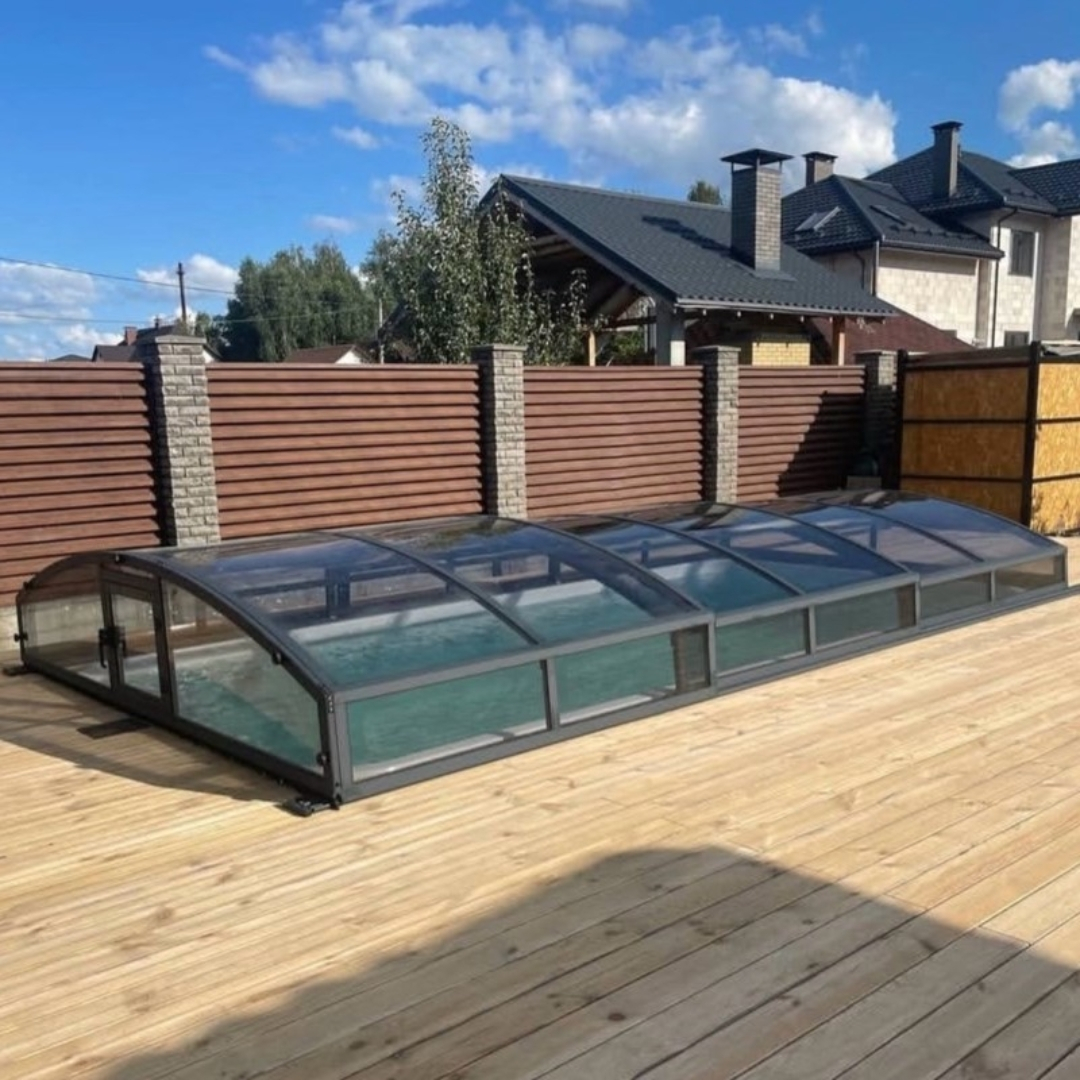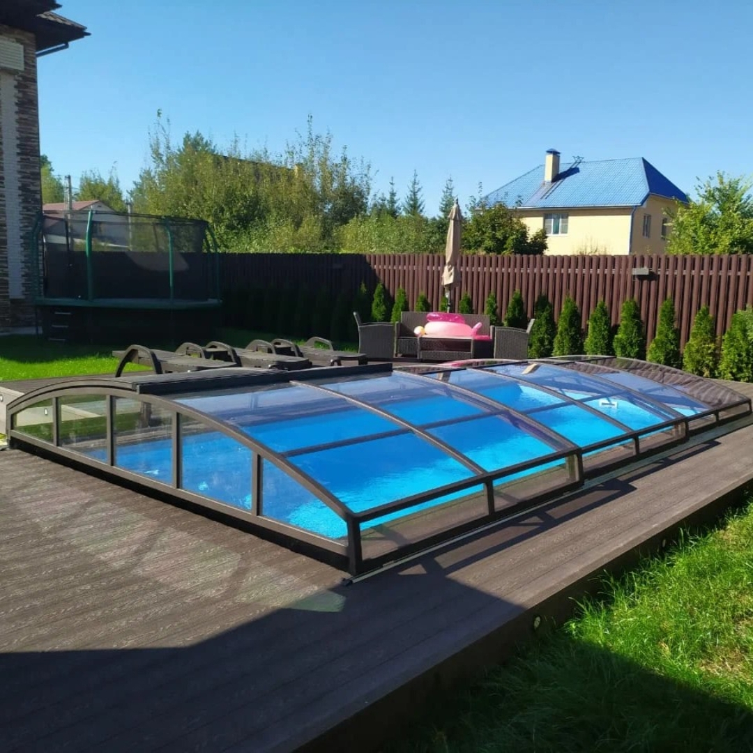 Раздвижной павильон Seccon AVRORA L - позволяет продлить купальный сезон, защитить бассейн от загрязнений и непогоды, а также обеспечить безопасность. Каркас павильона изготовлен из алюминиевых профилей, которые хорошо держат форму и не деформируется. Раздвижная конструкция позволяет легко перемещать сегменты. Панели выполнены из прочного канального поликарбоната.