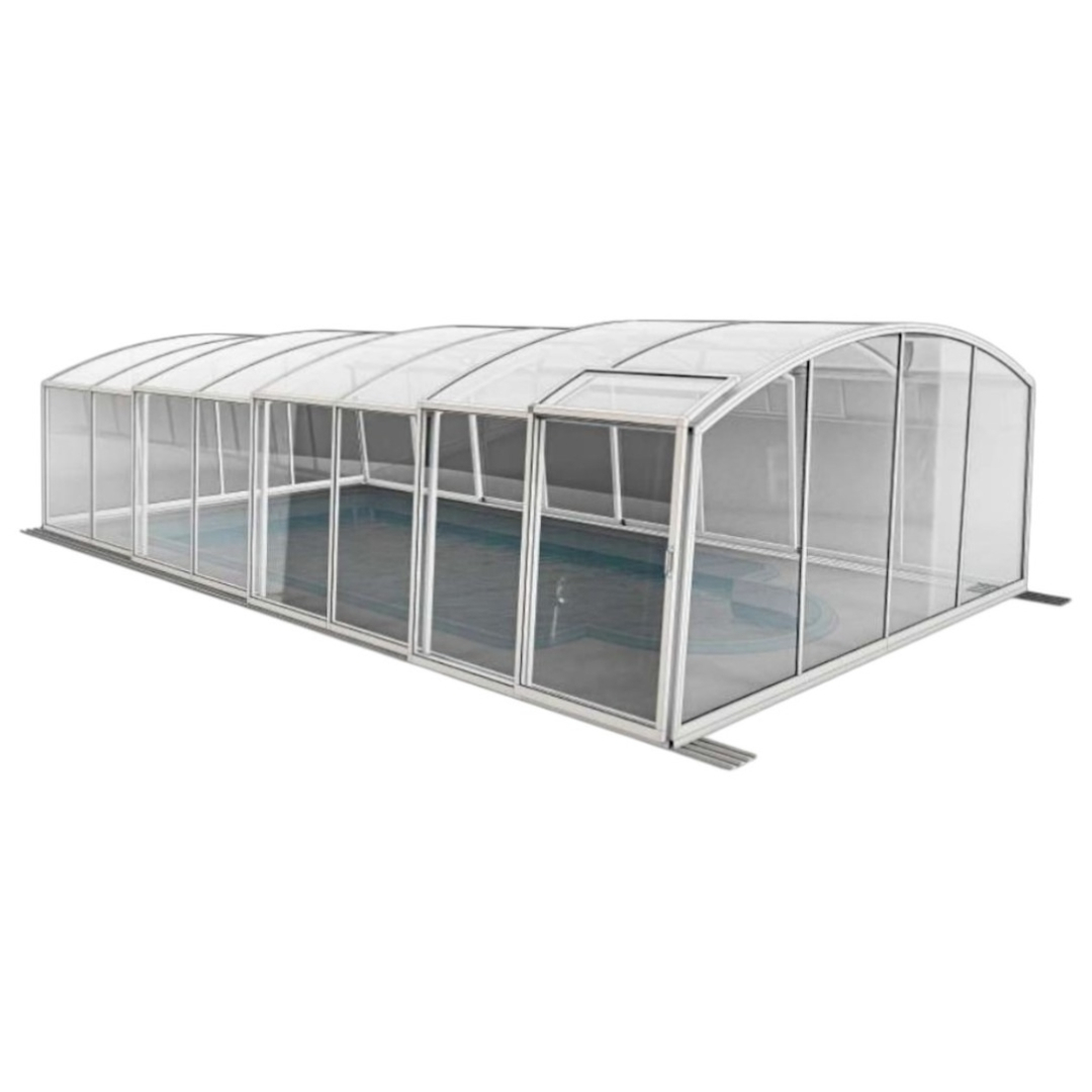 Раздвижной павильон Seccon AVRORA H - позволяет продлить купальный сезон, защитить бассейн от загрязнений и непогоды, а также обеспечить безопасность. Каркас павильона изготовлен из алюминиевых профилей, которые хорошо держат форму и не деформируется. Раздвижная конструкция позволяет легко перемещать сегменты. Панели выполнены из прочного канального поликарбоната.