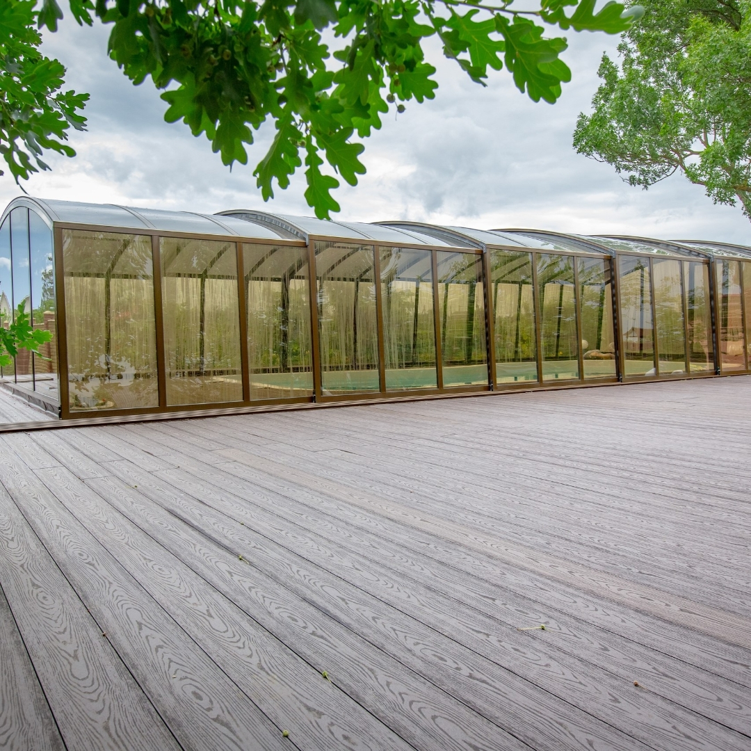 Раздвижной павильон Seccon AVRORA H - позволяет продлить купальный сезон, защитить бассейн от загрязнений и непогоды, а также обеспечить безопасность. Каркас павильона изготовлен из алюминиевых профилей, которые хорошо держат форму и не деформируется. Раздвижная конструкция позволяет легко перемещать сегменты. Панели выполнены из прочного канального поликарбоната.