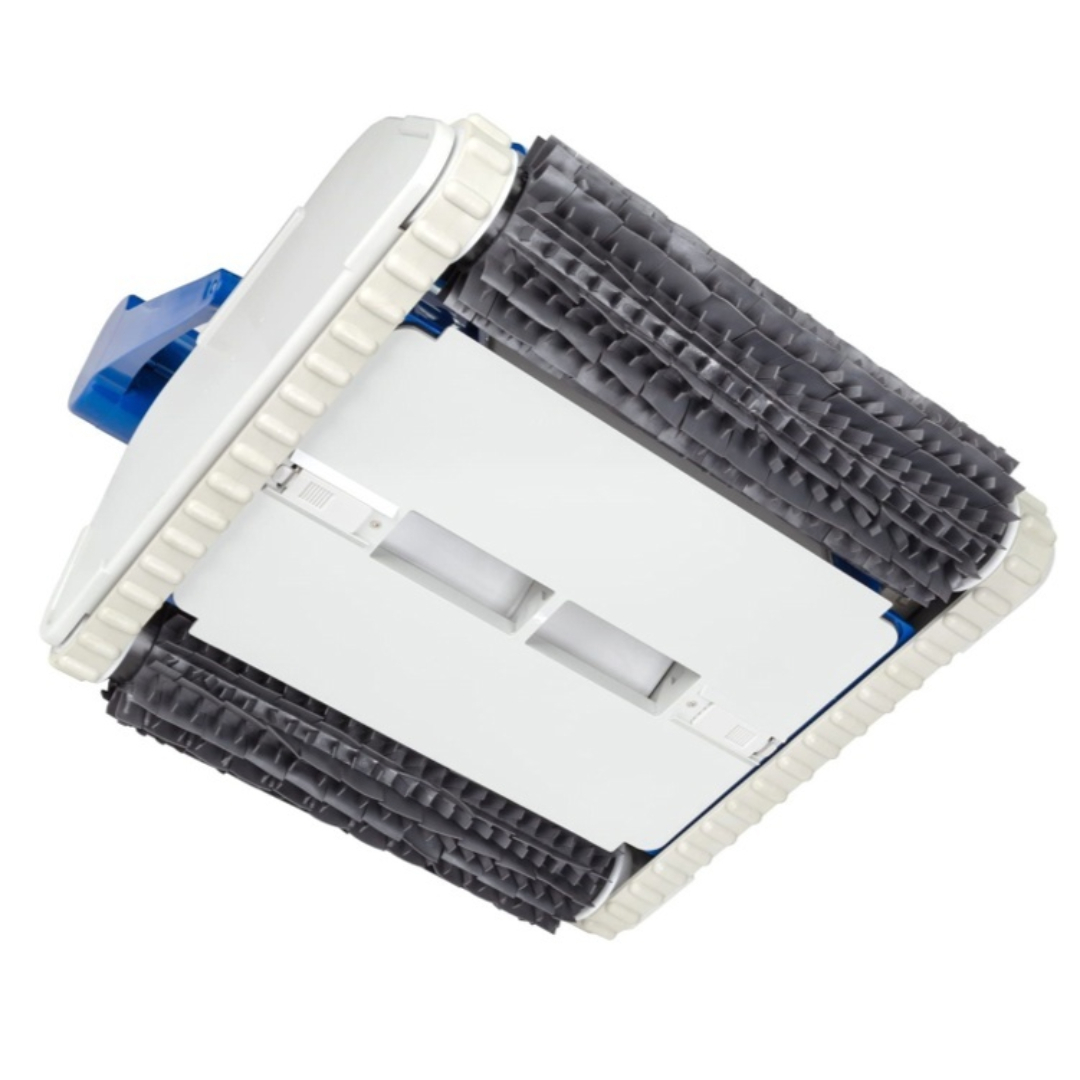 Основу конструкции пылесоса составляют водонепроницаемый мощный двигатель с насосом. Двигатель имеет встроенную защиту. Датчик Out-water препятствует работе вне воды, что дополнительно повышает защиту от перегрузки. Управляемый заданной программой, пылесос двигается по дну и бортам, одновременно очищая поверхность и фильтруя воду бассейна. Благодаря мощной тяге, он преодолевает выступы, карабкается по стенам и очищает зону над ватерлинией.