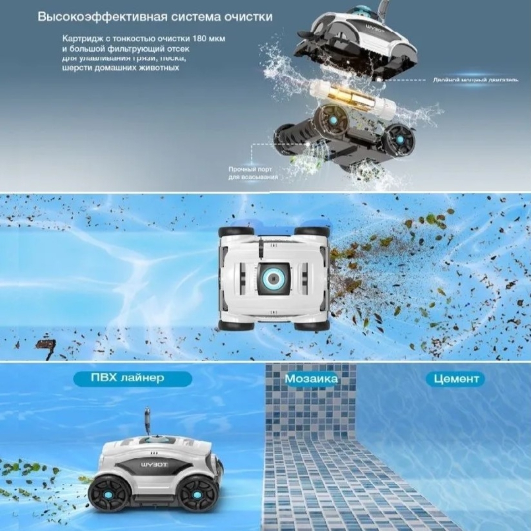 Пылесос Wybotics Osprey 300II - отличное решение для эффективной и долговременной очистки бассейнов любой формы и материала. Полностью автономный и не требует подключение к сети. Может самостоятельно составлять маршрут передвижения и очищать бассейн в труднодоступных местах.