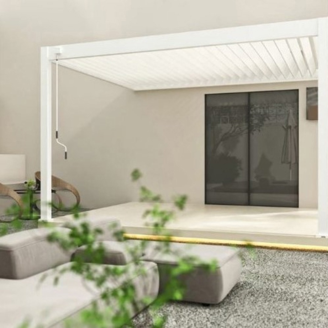 Пергола Aquaviva Авангард Макс 4х4м, Белая (монтаж к стене, руч. упр. ламелями)