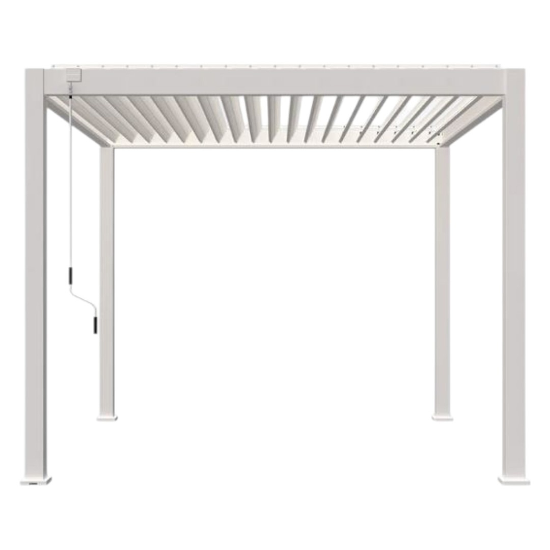 Пергола устойчива к атмосферным воздействиям и рассчитана на долгие годы службы благодаря продуманной конструкции, а также алюминию с порошковым покрытием. Большая часть фурнитуры изготовлена из нержавеющей стали, что обеспечивает надежные соединения высокого стандарта. Вода отводится с помощью специально разработанной водосточной системы, спрятанной в подставке.