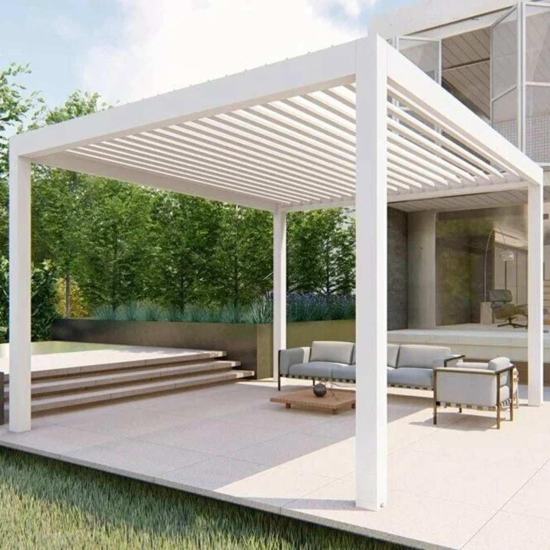 Пергола устойчива к атмосферным воздействиям и рассчитана на долгие годы службы благодаря продуманной конструкции, а также алюминию с порошковым покрытием. Большая часть фурнитуры изготовлена из нержавеющей стали, что обеспечивает надежные соединения высокого стандарта. Вода отводится с помощью специально разработанной водосточной системы, спрятанной в подставке.