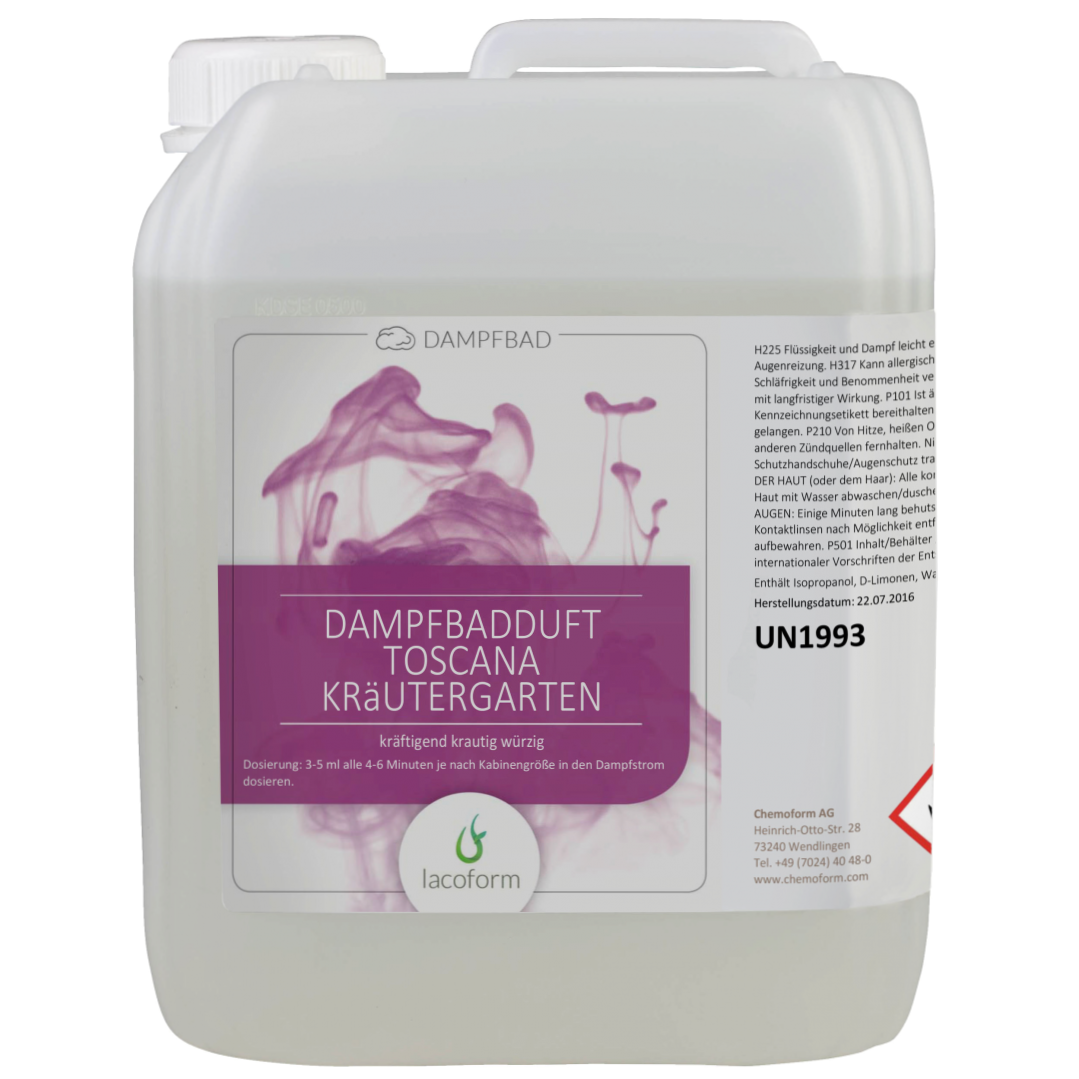 Ароматизатор Lacoform - предназначен для паровой кабины и бани/хамама. Используется для ручного и автоматического дозирования (подача через пароведущую трубу). Производится на основе натуральных эфирных масел без добавления вредных химических веществ. Обладает высокой летучестью и интенсивностью, благодаря чему быстро и равномерно распространяется во всем объеме парного помещения.