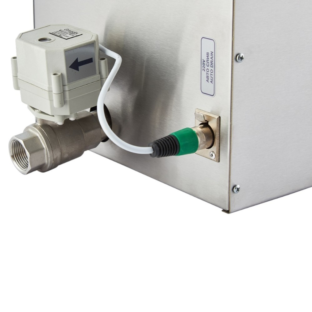Бойлер парогенератора изготовлен из нержавеющей стали толщиной 1,5 мм, и имеет гидродинамическую форму, благодаря чему остатки накипи гарантированно смываются при самоочистке. Оборудован медными нагревательными элементами Termowatt и контакторами Schneider Electric. Благодаря встроенному в бойлер сепаратору, который фильтрует пар от воды, в сауне образуется мягкий пар.