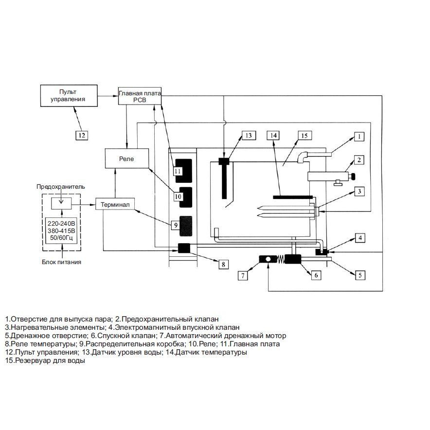 * Автозаполнение - парогенератор автоматически заполняется водой через клапан после запуска системы.