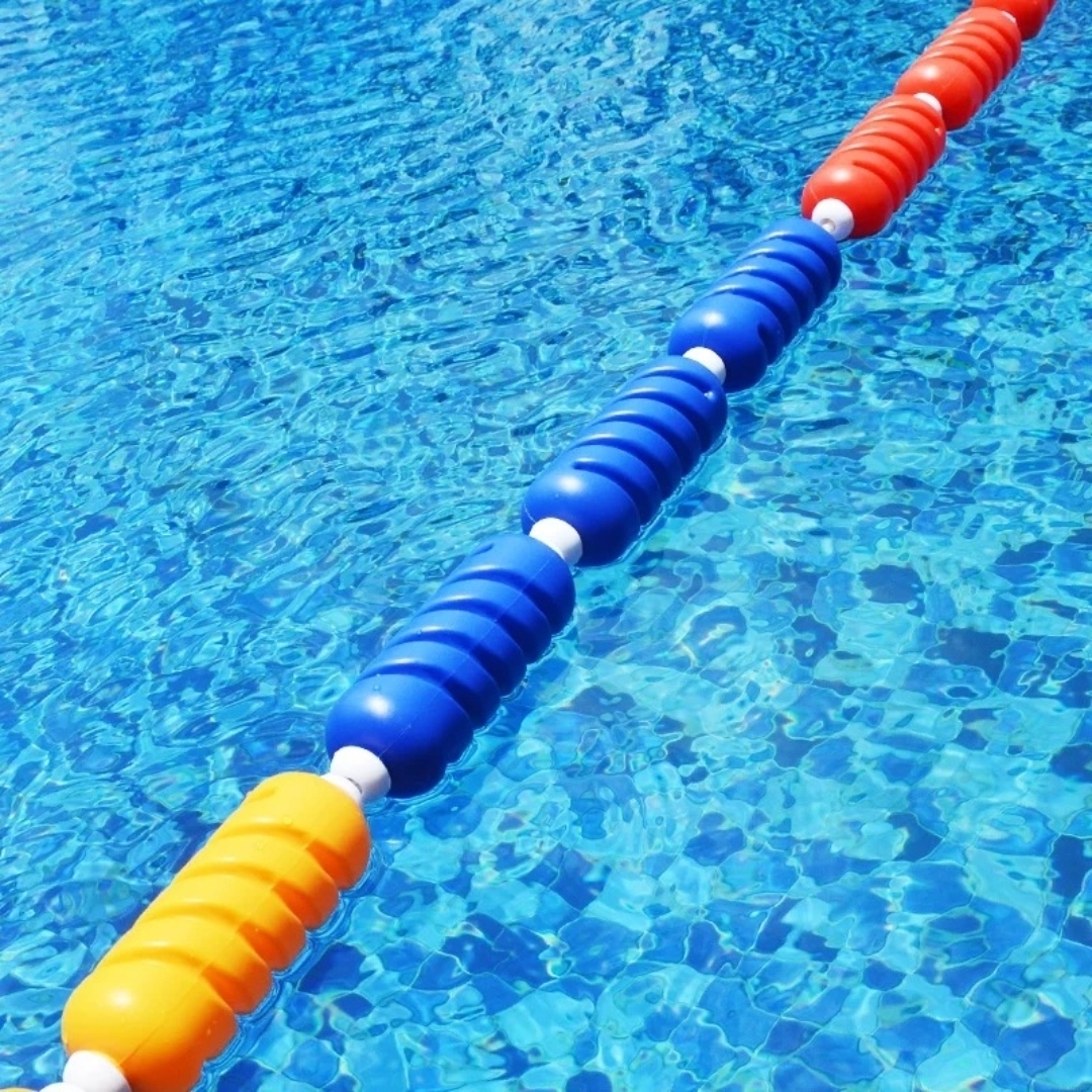 Разделительная дорожка Jcaqua JPA49-50 - используется для обозначения индивидуальной линии во время плавания. Создает четкое разделение между пловцами, что позволяет предотвратить столкновения. Также дорожка поглощает волны, создаваемые пловцами соседних линий. Поплавки изготовлены из прочного полиэтилена. Трос выполнен из нейлона. Цвета: красный, синий, желтый.