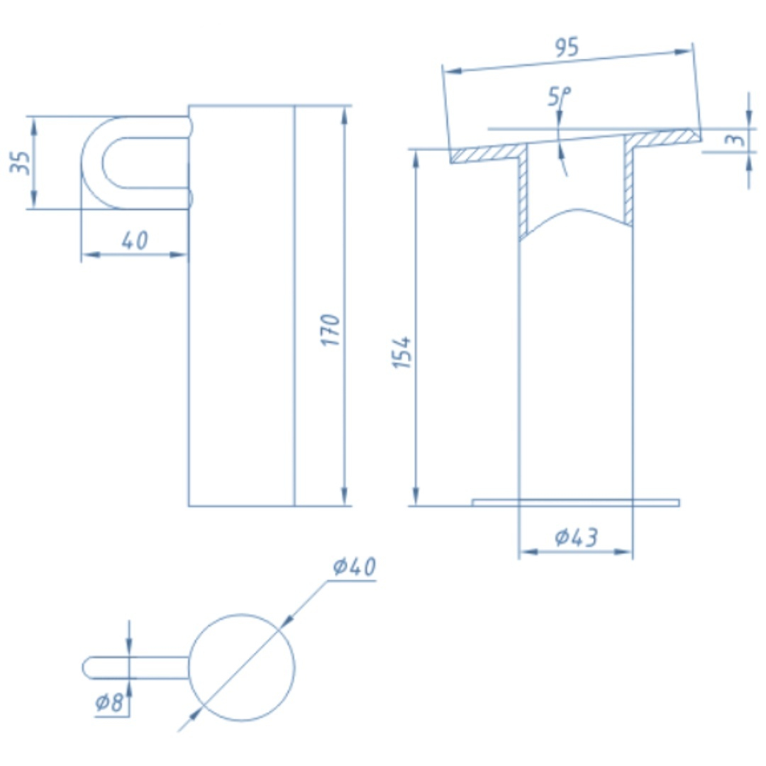 Наклонный анкер крепления Акватехника АТ 10.04М - является закладным элементом для крепления спортивной дорожки бассейна. Изготовлен из нержавеющей стали.