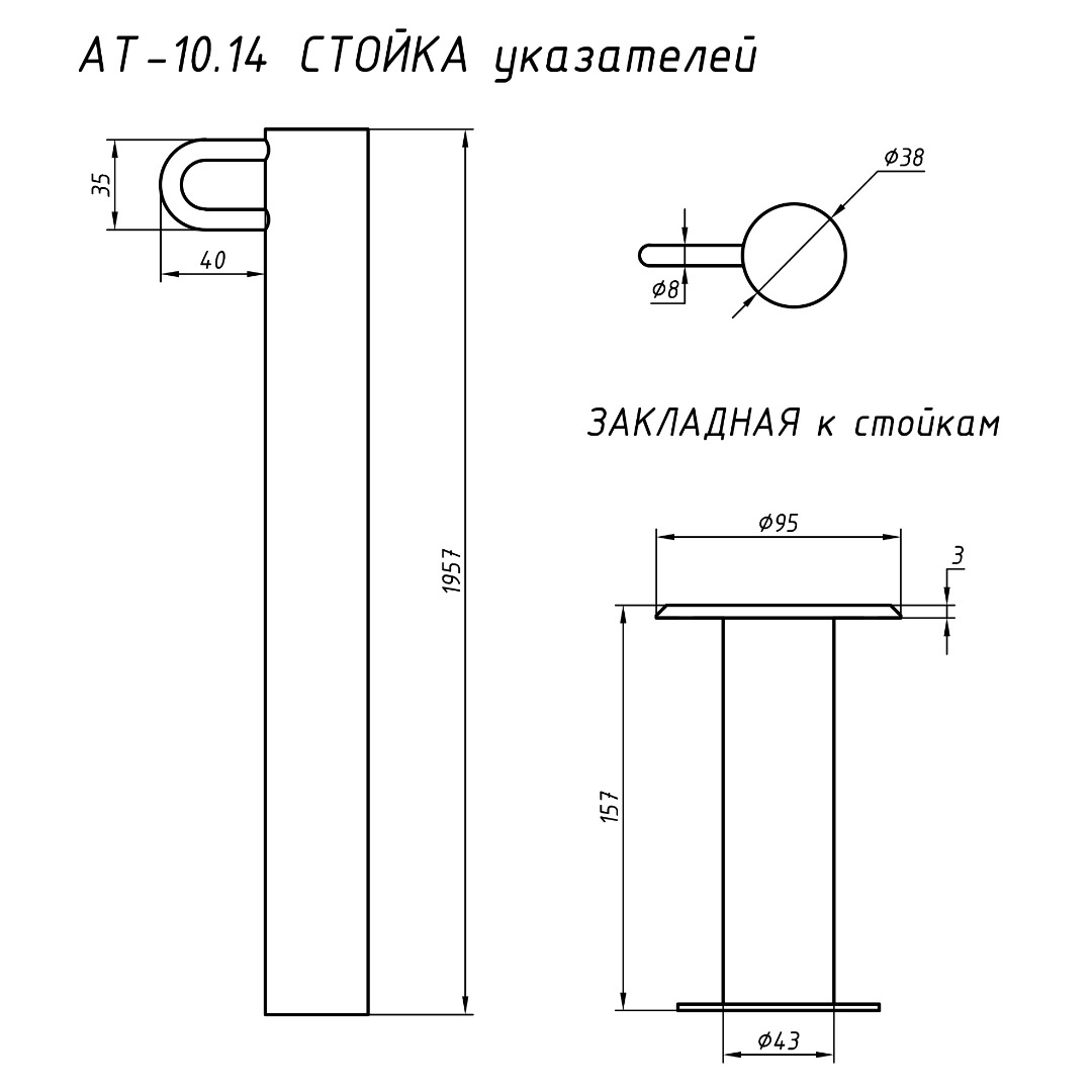 Стойка указателей с закладной AISI-316, Акватехника АТ 10.14М