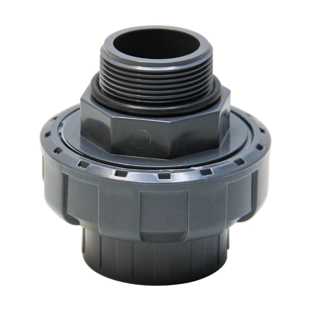 Муфта разборная переходная Aquaviva - используется для сведения элементов трубопровода с клеевым и резьбовым соединениями. Имеет наружную резьбу. Концевое соединение, тело и соединительная гайка изготовлены из прочного ПВХ. Уплотнительное кольцо EPDM. Подходит для транспортировки жидкостей от 1 до +60°C под давлением и может использоваться в системах водоснабжения и водоподготовки.
