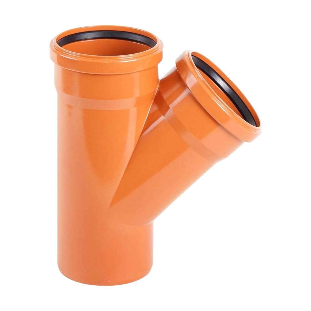 Тройник 45° Aquaviva - используется для создания ответвления в трубопроводе. Изготовлен из высокопрочного НПВХ, устойчивого к коррозии и ультрафиолету. Подходит для транспортировки жидкостей с максимальной температурой до 60 °C. При увеличении температуры рабочей жидкости предельное давление снижается. Соединение раструбное.