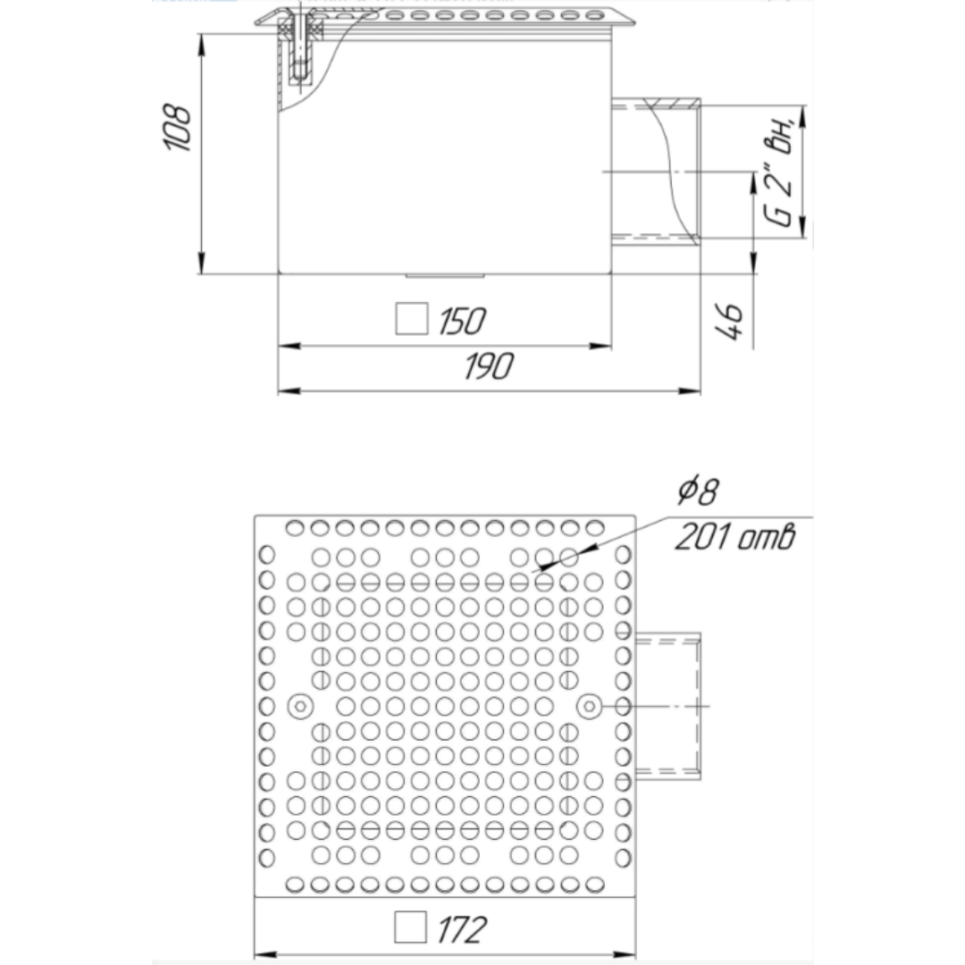 Донный слив RunwillPools Р4-08L, 150х150х100, AISI-316 (под пленку)