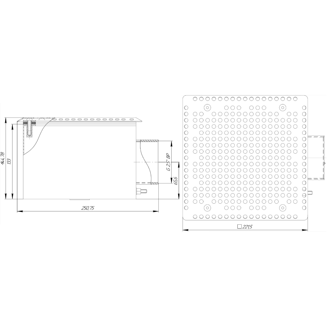 Донный слив RunwillPools Р4-10L квадратный, 200х200х120, AISI-316 (под пленку)