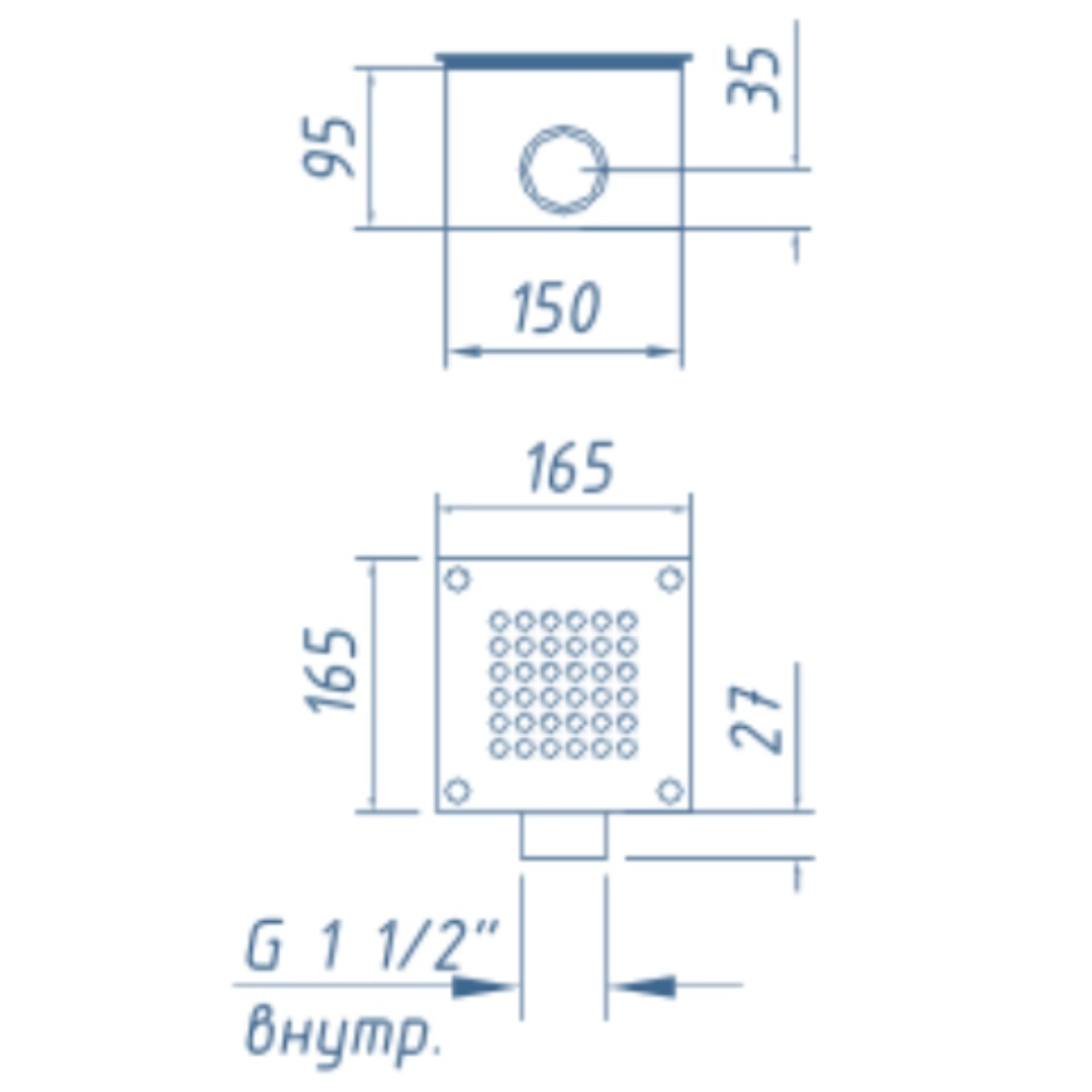 Донный слив 165х165, AISI-316, Акватехника АТ 04.07М (под плитку)