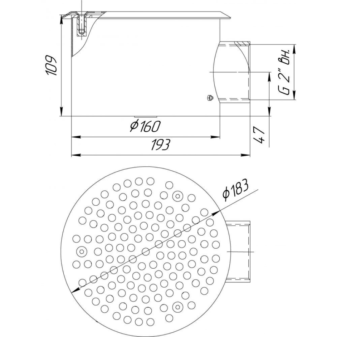Донный слив RunwillPools Р4-03 круглый, 160x100, AISI-304 (под плитку)
