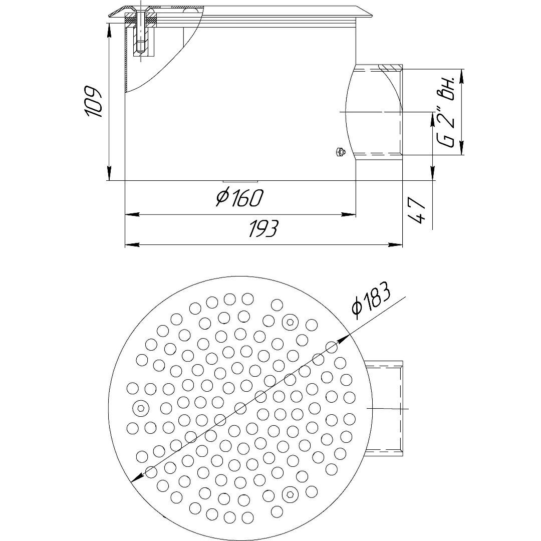 Донный слив RunwillPools Р4-06L круглый сетчатый, 160x100мм, ВР 2", AISI-316 (универсальный)