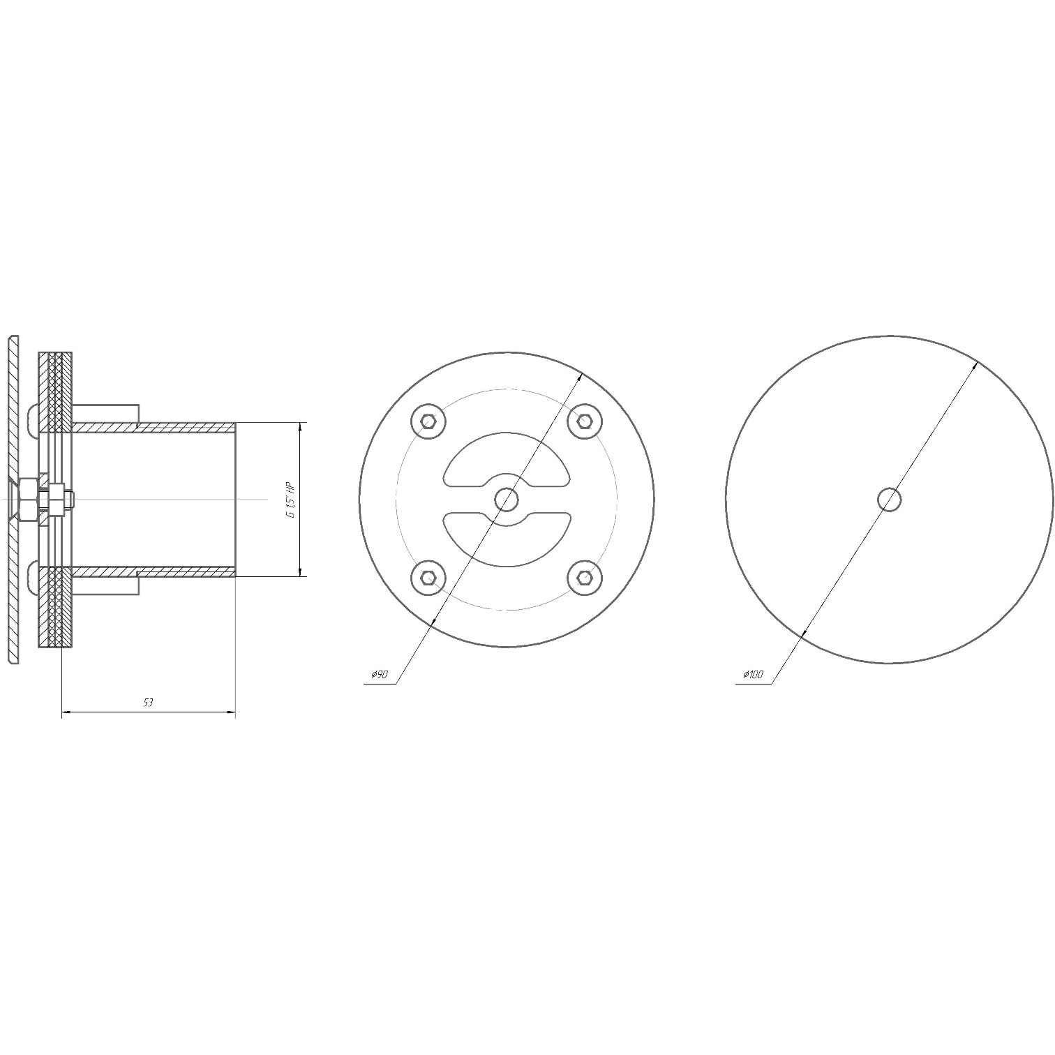 Форсунка донная RunwillPools Р7-09L рассеивающая, 1,5", AISI-316 (под пленку)
