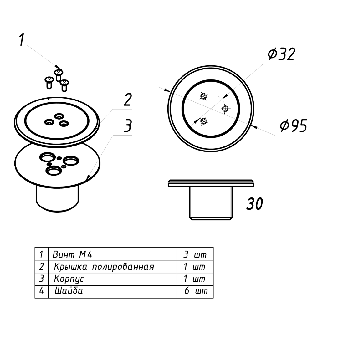 • Винт М4: 3шт