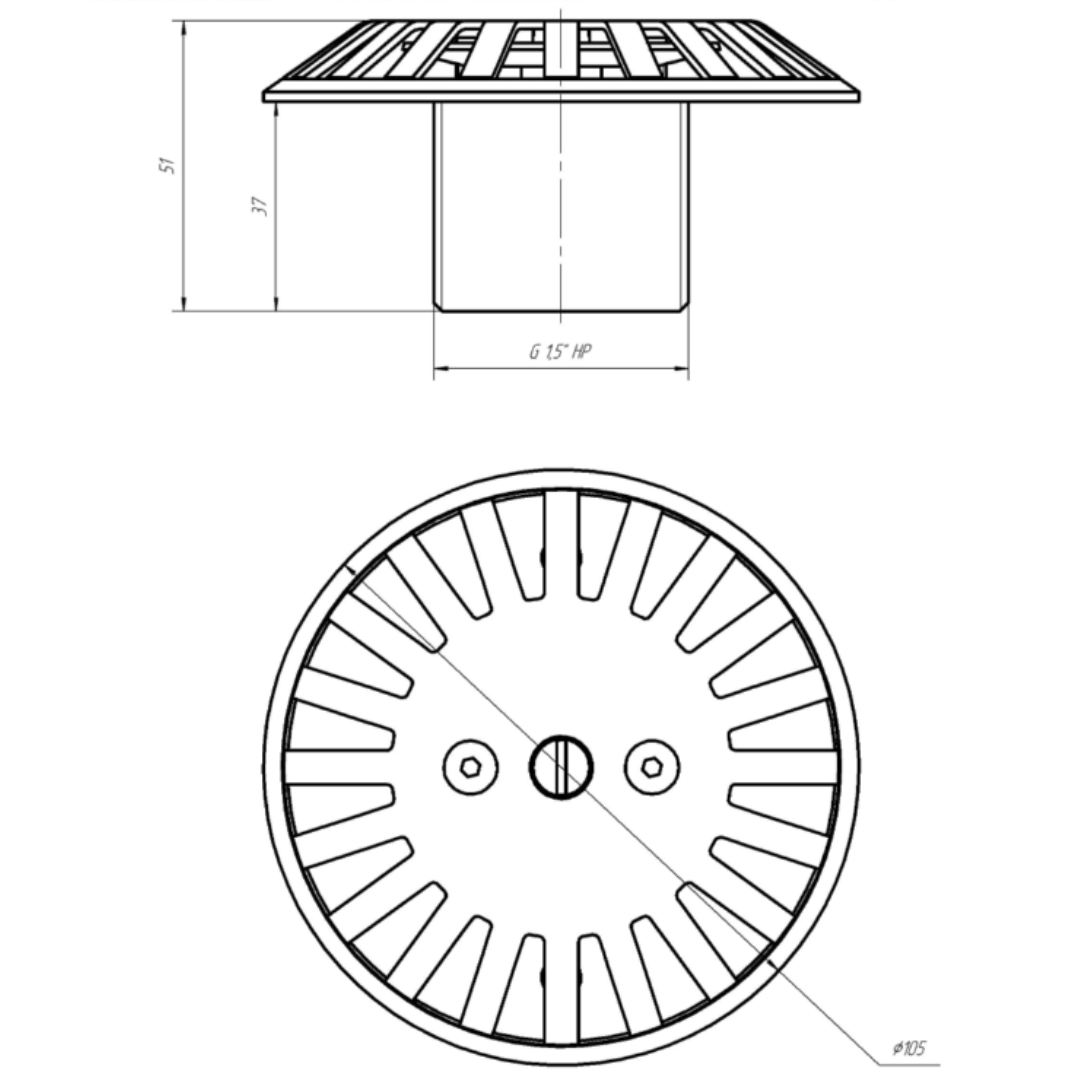 Форсунка донная RunwillPools Р7-06.3L рассеивающая, 1,5", AISI-316 (под плитку)