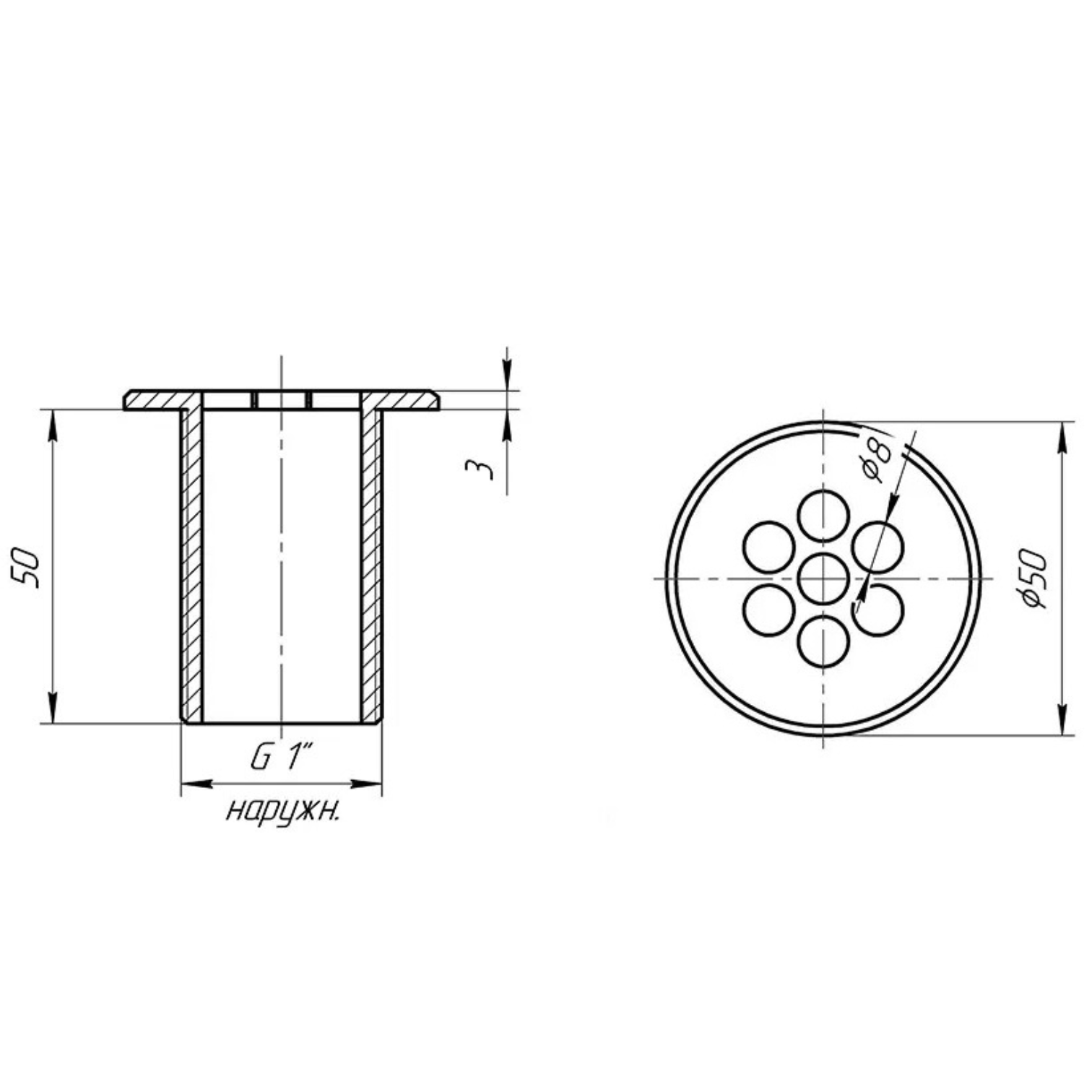 Форсунка донная RunwillPools Р7-07L для купели, НР 1", AISI-316 (под плитку)