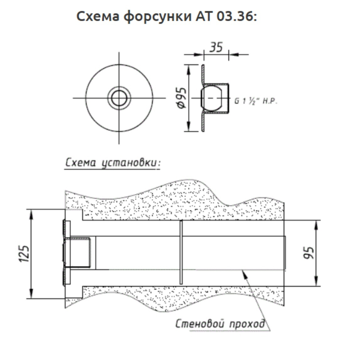 Форсунка стеновая Акватехника АТ 03.36M, AISI-316 (под плитку)