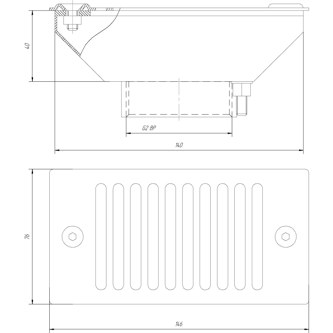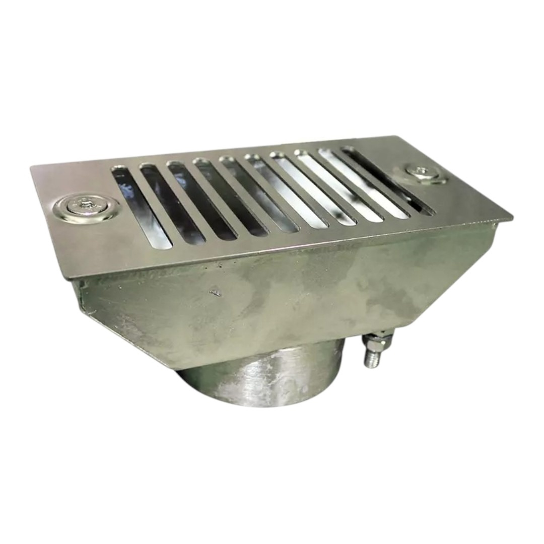 Слив переливного лотка RunwillPools Р13-05L - предназначен для отвода воды из переливного лотка. Предотвращает попадание крупного мусора в трувопровод. Изготовлен из нержавеющей стали, устойчивой к коррозии, воздействию ультрафиолета и химических реагентов.