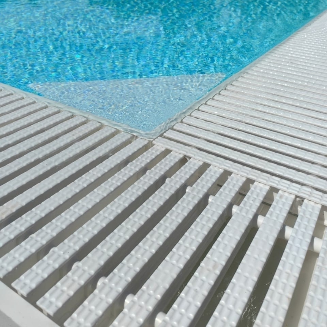 Переливная решетка Aquaviva Classik - используется для создания зоны перелива в бассейнах. Выполняет функцию забора воды, а также декорирующую функцию. Состоит из отдельных ячеек, имеет двойное соединение элементов. Изготовлена из прочного полимерного сплава, стойкого к ультрафиолету и влажности. Материал рассчитан на круглогодичное размещение на улице даже в условиях отрицательных температур.