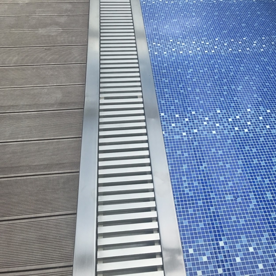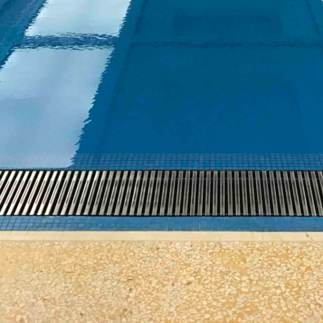 Переливная решетка Xenozone - используется для создания зон перелива плавательных бассейнов. Выполняет функцию забора воды, а также декорирующую функцию. Изготовлена из нержавеющей стали, устойчивой к коррозии, воздействию ультрафиолета и химии. Может быть 2-х видов: с матовой поверхностью и зеркальной. Собирается на прямых участках модулями (0,5м) и примыкает к угловым элементам, выполненным на 90° или 45°.