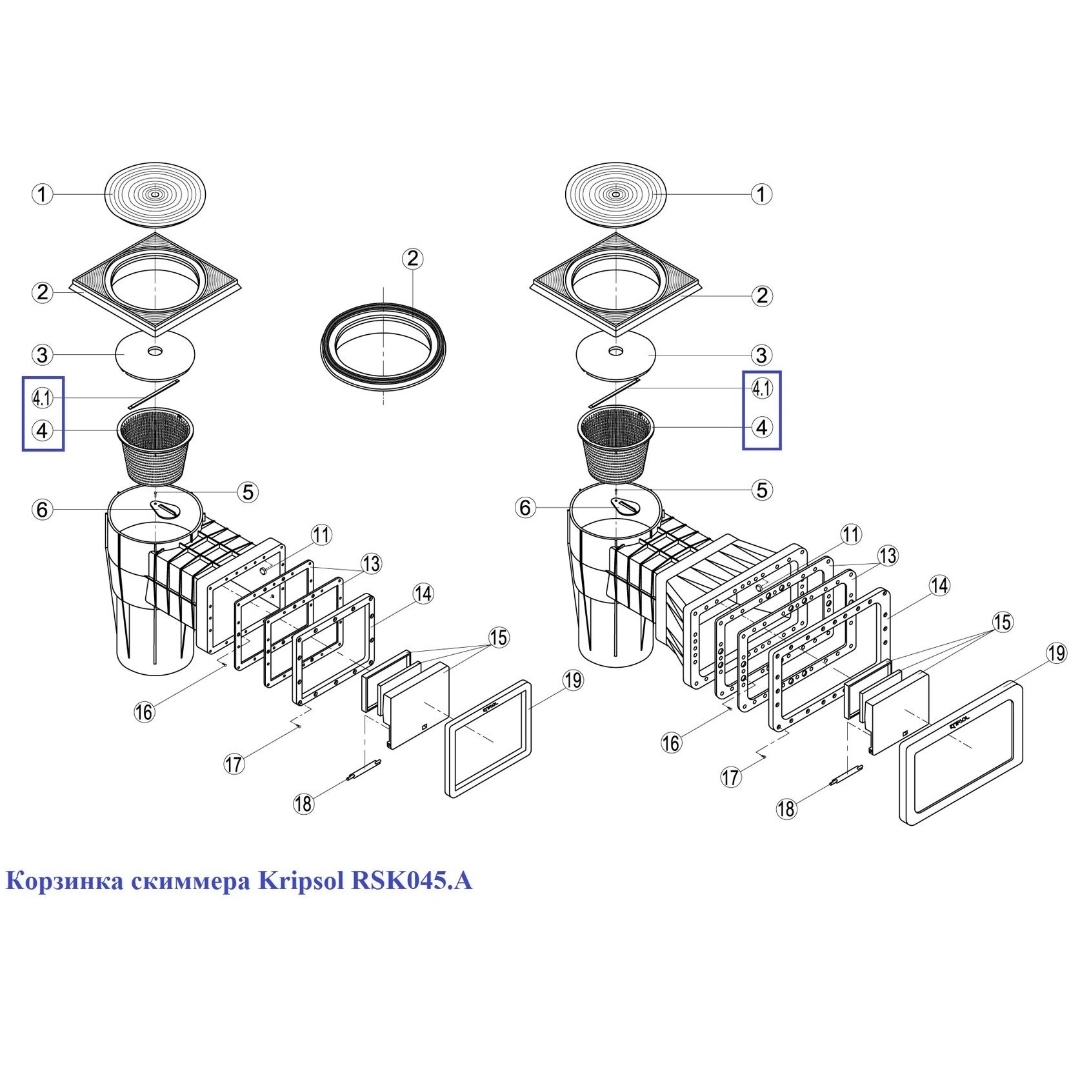 Корзинка скиммера Kripsol RSK045.A - предназначена для скиммера Kripsol. Изготовлена из прочного пластика, устойчивого к коррозии, воздействию ультрафиолета и химии. Оснащена удобной ручкой.