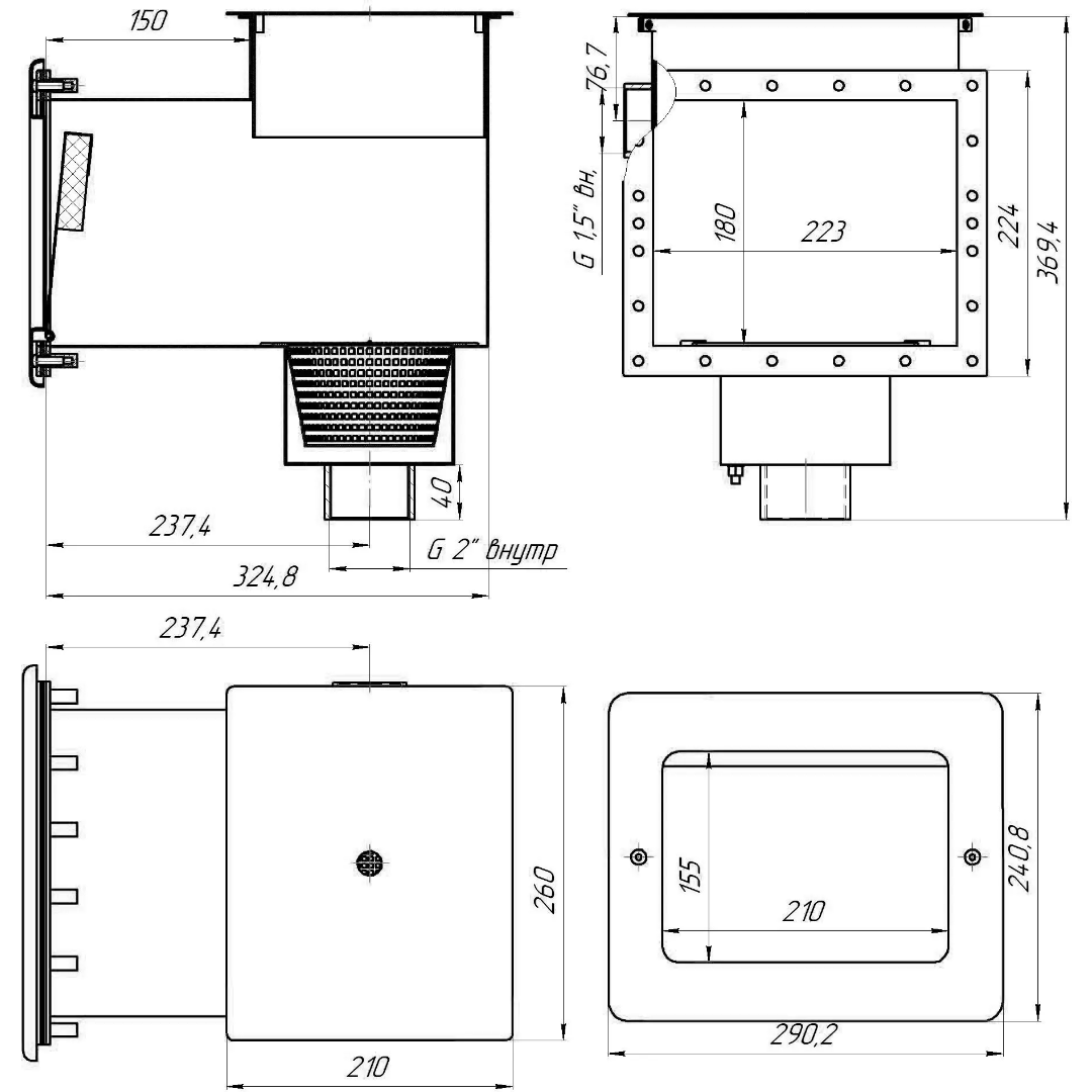 Скиммер 25м² RunwillPools Р3-11L, AISI-316 с удлиненной горловиной (под пленку)