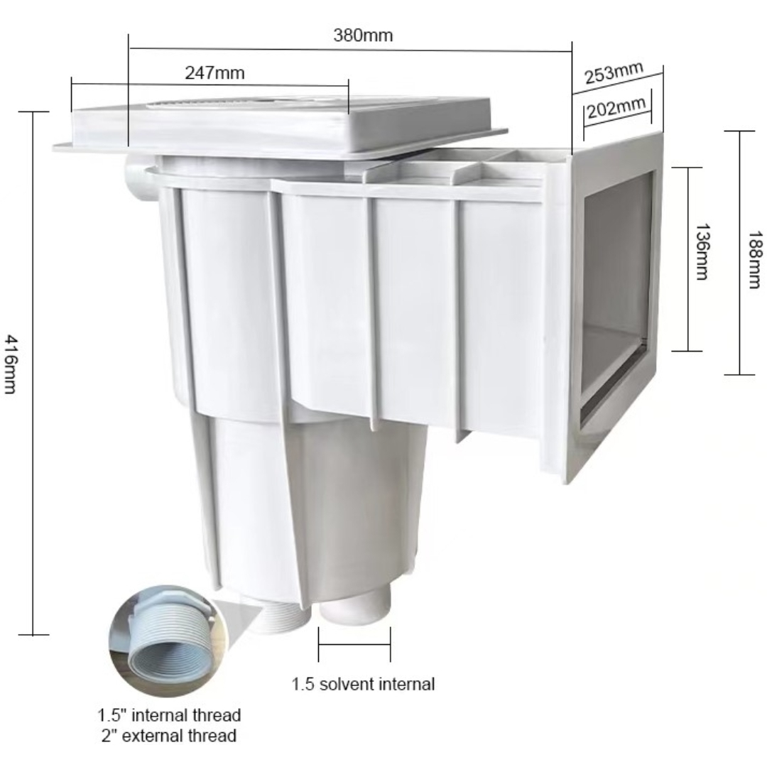 Скиммер Jcaqua JPA113 - предназначен для забора воды с поверхности бассейна и очищения ее от плавающего мусора. Изготовлен из прочного пластика, устойчивого к коррозии, воздействию ультрафиолета и химии. Плавающая заслонка разделяет верхние слои воды от нижних (очищается только засоренная вода).