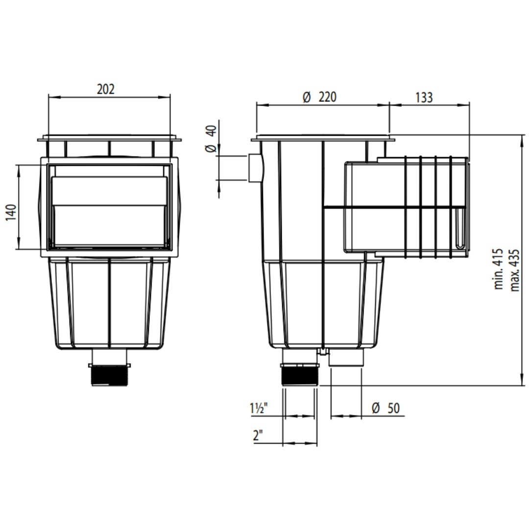 Скиммер 15л AstralPool 00250, стандартный раструб (под плитку)