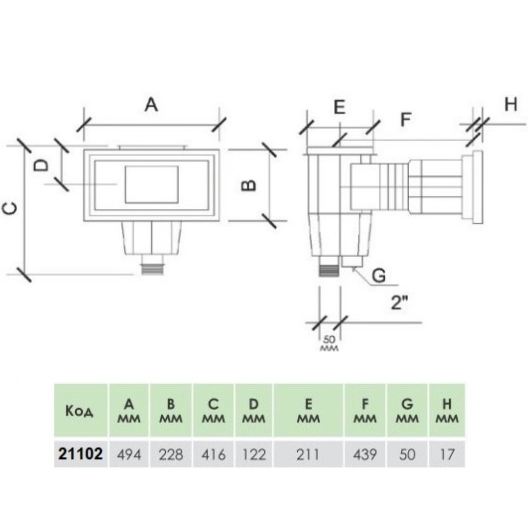 Скиммер Aquant 21102 Wide, широкий (под плитку)