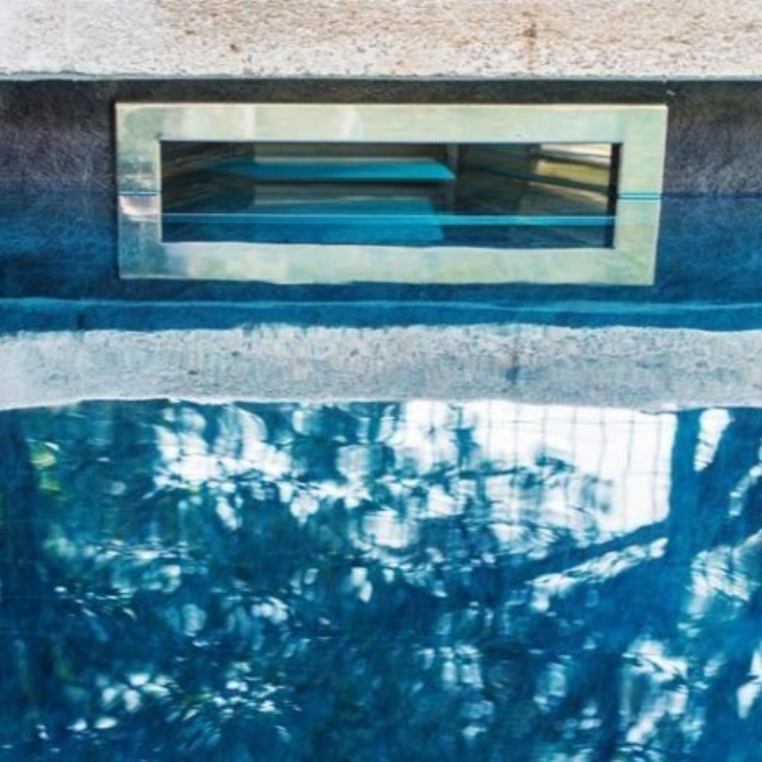 Винты прижимного фланца находятся внутри корпуса тем самым обеспечивая полную гидроизоляцию. Крышка полностью закрывает внутренний отсек скиммера, чем обеспечивает полную изоляцию места соприкосновения плитки и корпуса скиммера.