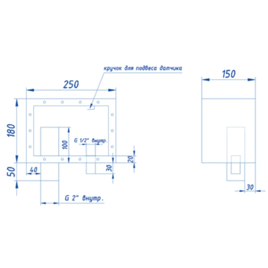 Корпус скиммера без телескопической крышки. С заземлением. Внутри корпуса предусмотрен крючок для подвеса датчика уровня воды. Оснащен фильтрующей выдвижной стальной корзиной. Перелив позволяет вывести избыточное количество воды из системы водоподготовки.