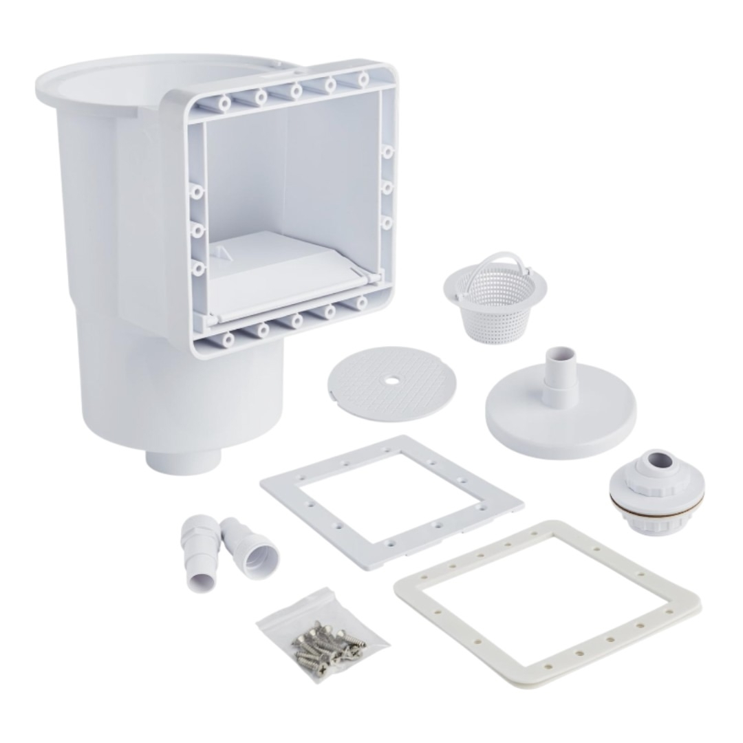 Скиммер Pool King PAWS611 - предназначен для забора воды с поверхности бассейна и очищения ее от плавающего мусора. Изготовлен из прочного пластика, устойчивого к высокому давлению, ультрафиолету и химии. Поставляется со всеми необходимыми фланцами и прокладками для безопасной и герметичной установки.