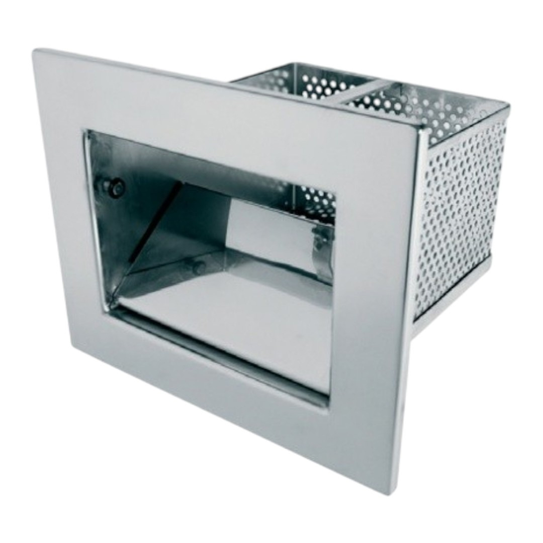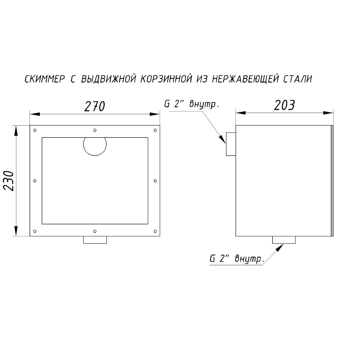 Скиммер Акватехника АТ 05.23М - предназначен для забора загрязнений с поверхности воды. Изготовлен из кислостойкой нержавеющей стали, устойчивой к коррозии, воздействию ультрафиолета и химии. Корпус скиммера без телескопической крышки с заземлением. Оснащен фильтрующей выдвижной стальной корзиной. Перелив позволяет вывести избыточное количество во воды из системы водоподготовки.