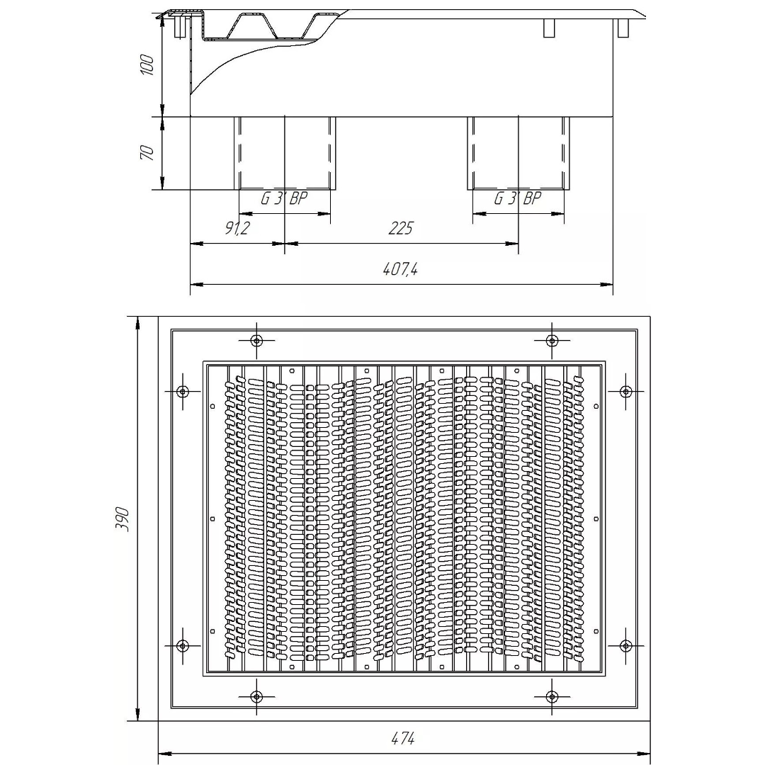 Водозабор 90м³/ч RunwillPools Р5-20L прямоугольный, AISI-316 (под плитку)