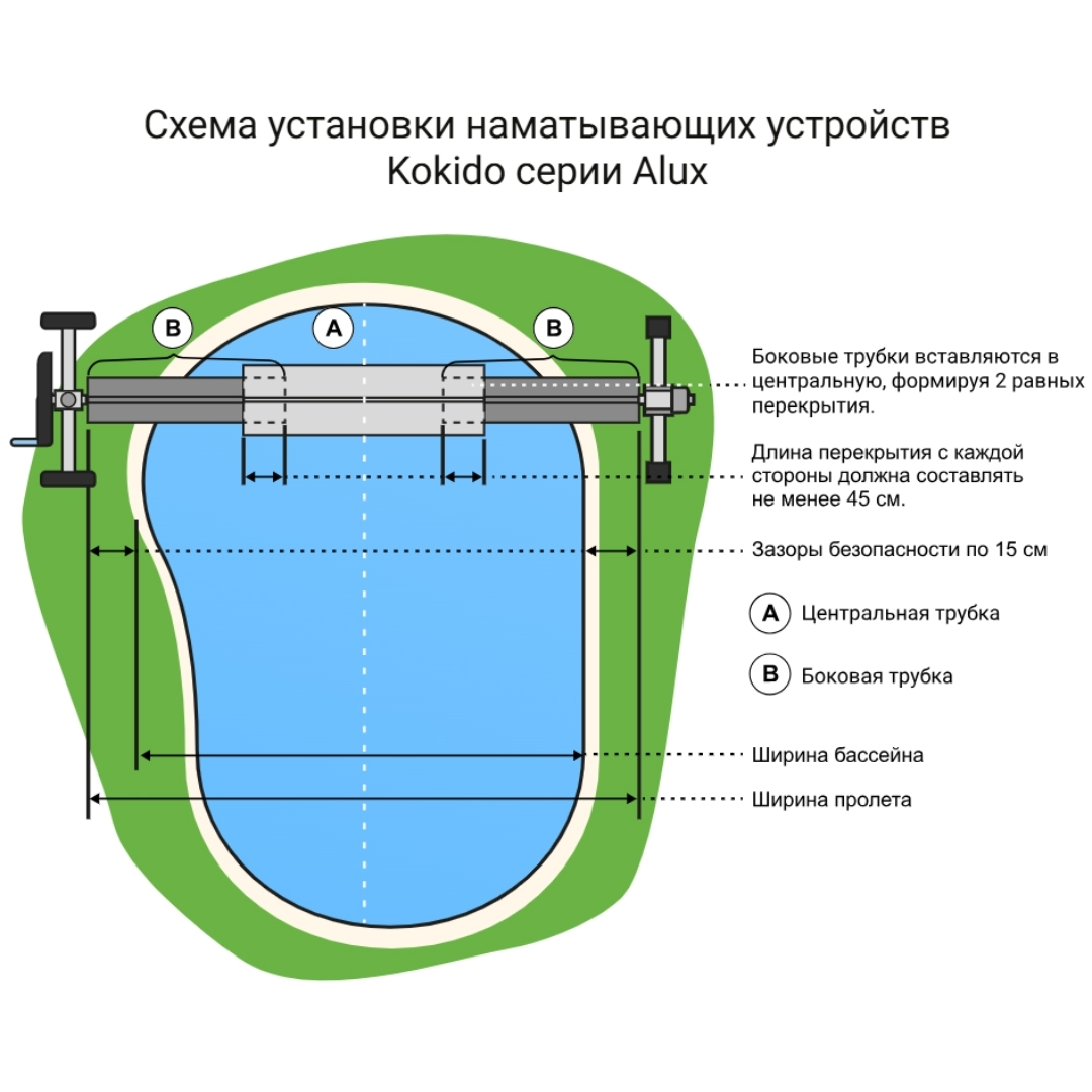 Наматывающее устройство Kokido Alux K946BX/98 - позволяет легко и быстро сматывать и разматывать покрытие для бассейна. Благодаря своей надежности, механизм выдерживает нагрузку в 30кг, учитывая вес трубок, усилителя и мокрого тента, при этом гарантируя плавность и равномерность движения покрытия. Управление с помощью ручного колеса с удобным захватом.